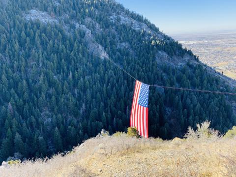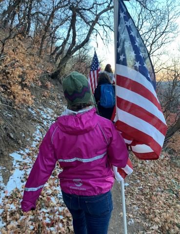To be assembled with many great citizens of North Ogden, who all had the same dedicated desire as I did, was a tangible, heartwarming feeling. As we hiked up the mountain my cold body began to steadily warm up, leaving only the tips of my fingers to finally feel the sensation of the rising sun. Walking and talking with new friends, old acquaintances and leaders of Follow the Flag gave me everything to smile about.
