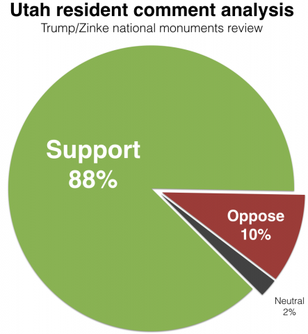 The Center for Western Priorities also identified approximately 4,800 comments from self-identified Utah residents. Of those Utahns, a random sample (n=823) reveals 88 percent support for keeping monument status for Bears Ears or Grand Staircase–Escalante national monuments.** These results are consistent with CWP’s previous analysis which found comments from Utah residents support national monuments by a nine‑to‑one margin.