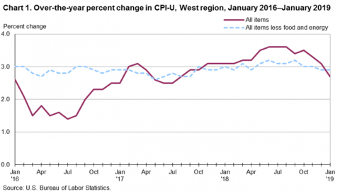 Prices in the West Region, as measured by the Consumer Price Index for All Urban Consumers (CPI-U), edged up 0.2 percent in January, the U.S. Bureau of Labor Statistics reported today. The January increase was influenced by higher prices for shelter and food.