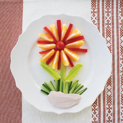2. Cook with your kids. Find fun recipes that let them explore fresh foods where they can be creative. Find age-appropriate ways to involve them, like stirring or measuring, and encourage them to get hands-on with recipes, such as this fun Flower Salad recipe from registered dietitian Ellie Krieger.