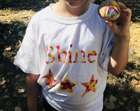 We talked of being a light to others and sharing our light. Choosing to be kind like our rocks say. And reflecting what their t-shirt reads: “SHINE.”