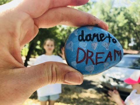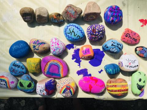 Next, we painted rocks. We decided to make “Kindness Rocks” and told the girls to put a saying on that might uplift someone else. They were eager to get to the task. Amazing creations were born! They were building unity but having fun at the same time.