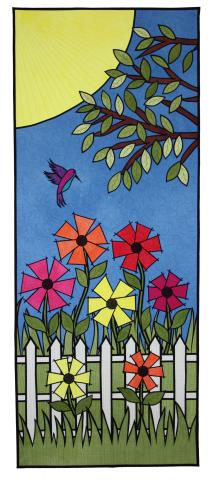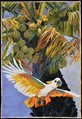 Less serious themes are Sue Bleiweiss’ whimsical quilts “Tutti Fruitti Main Street” and “The Hummingbird” and Jeannie P. Moore’s “Cockatoo in Paradise.” “Critters” such as lizards, beetles and leafhoppers appear in Jane Sassaman’s and Suzanne Marshall’s quilts. Bleiweiss is from Massachusetts; Moore, California; Sassaman, Illinois; and Marshall, Missouri.
