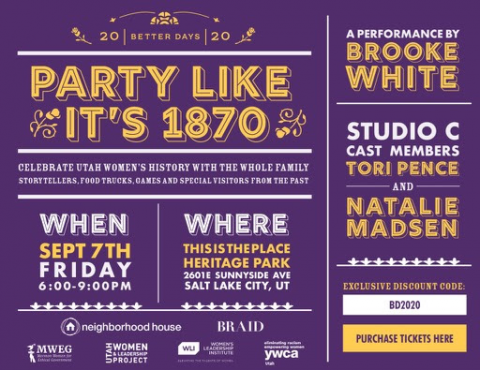 Spend an evening learning about and celebrating Utah's women of the past and present! Mothers, daughters, sisters, friends and entire families are invited to this informational festival that takes us back to 1870 - the year a woman cast the first ballot in the country, right here in Utah!